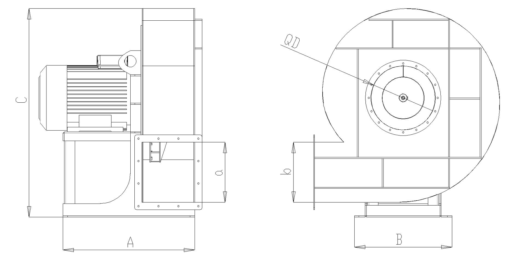 ENDÜSTRİYEL RADYAL FAN YÜKSEK BASINÇLI GERİYE EĞİMLİ SEYREK KANATLI