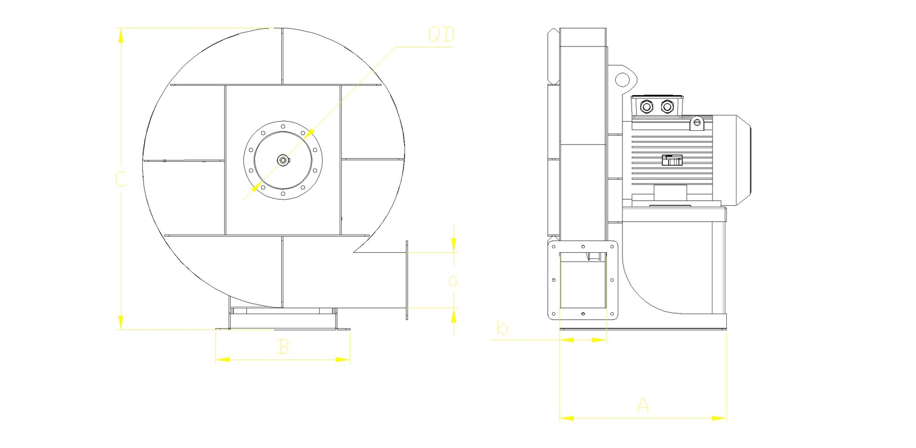 ENDÜSTRİYEL RADYAL FAN YÜKSEK BASINÇLI GERİYE EĞİMLİ SEYREK KANATLI